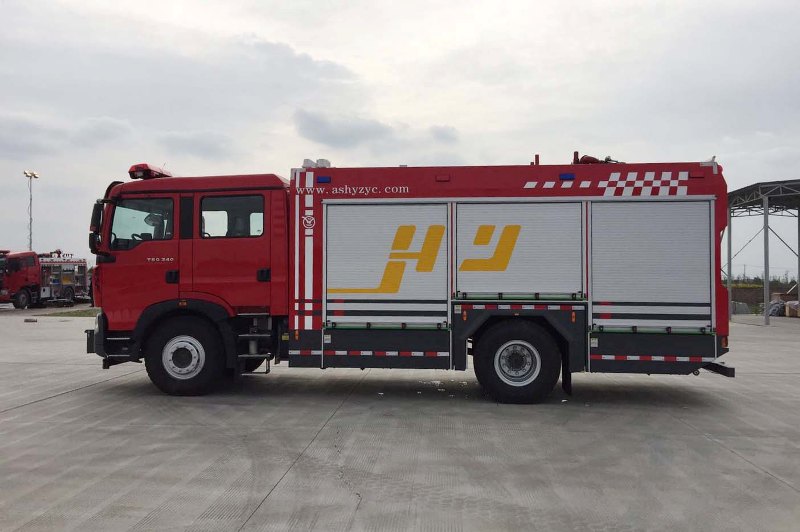 車(chē)輛底盤(pán)為ZZ5207TXFV471GF5底盤(pán),發(fā)動(dòng)機(jī)型號(hào)MC07H.35-60,功率為257kw,國(guó)六排放標(biāo)準(zhǔn),軸距4500mm,罐體材質(zhì)采用采用優(yōu)質(zhì)304不銹鋼板,容罐容量:水3600kg+B類泡沫900kg+A類泡沫200kg;消防泵為KSP1000(美國(guó)大力);壓縮空氣泡沫系統(tǒng):品牌:美國(guó)大力,型號(hào):KSPBC1000/220型,型式:全自動(dòng)集成式壓縮空氣A類泡沫系統(tǒng),消防炮為PLKD48手動(dòng)及電控,升降照明系統(tǒng)YZH6-4.83CFA,牽引絞盤(pán)系統(tǒng)為杭州天銘FHW16500。